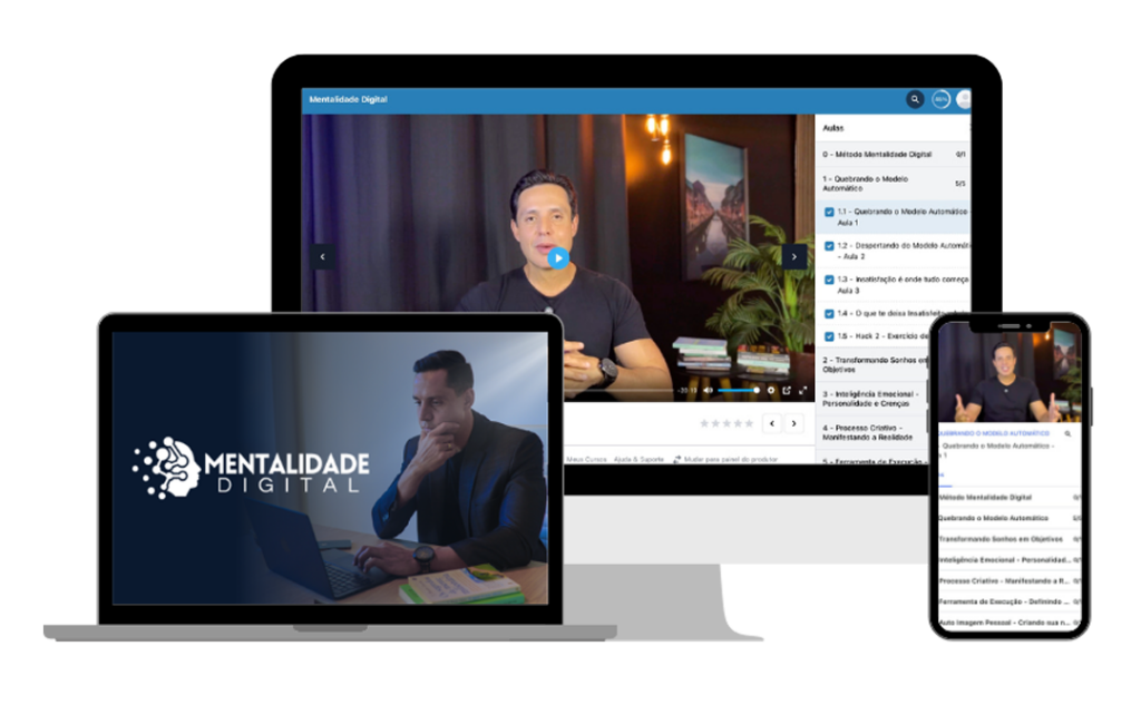 Não. A Mentalidade Digital é um processo estruturado que te guia desde a mudança de mentalidade até a criação de um produto digital lucrativo e escalável. Aqui, você aprende a organizar seu conhecimento, criar uma metodologia própria e se posicionar com autoridade no digital
